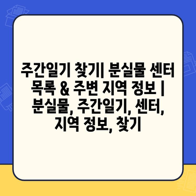 ✅ 주간일기 찾기 막막하신가요? 분실물 센터 목록과 주변 지역 정보를 한눈에 확인해 보세요!