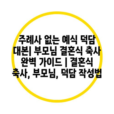 주례사 없는 예식 덕담 대본| 부모님 결혼식 축사 완벽 설명서 | 결혼식 축사, 부모님, 덕담 작성법 에 대해 자주 묻는 질문 TOP 5
