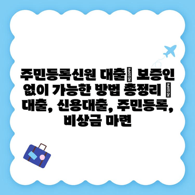 주민등록신원 대출| 보증인 없이 가능한 방법 총정리 | 대출, 신용대출, 주민등록, 비상금 마련 에 대해 자주 묻는 질문 TOP 5