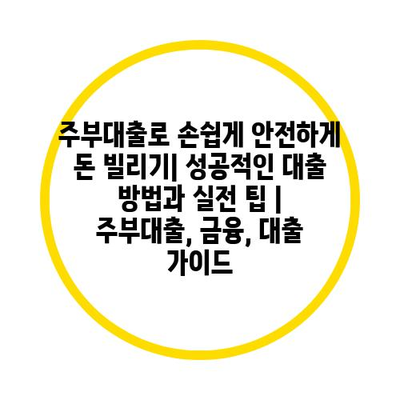 주부대출로 손쉽게 안전하게 돈 빌리기| 성공적인 대출 방법과 실전 팁 | 주부대출, 금융, 대출 가이드