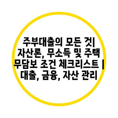 주부대출의 모든 것| 자산론, 무소득 및 주택 무담보 조건 체크리스트 | 대출, 금융, 자산 관리 에 대해 자주 묻는 질문 TOP 5
