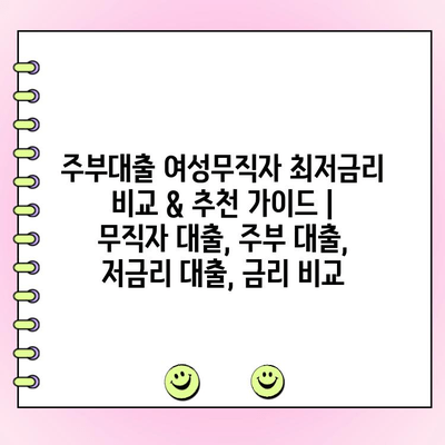 걱정하지 마세요! 이 글에서는 주부 대출, 특히 여성 무직자를 위한 최저금리 대출 정보를 알려제공합니다. 다양한 금융 제품 비교, 대출 조건 확인, 전문가 추천까지! 꼼꼼하게 준비해서 나에게 딱 맞는 저금리 대출을 찾아보세요.