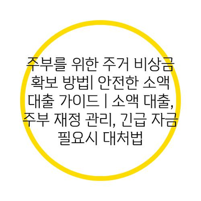 주부를 위한 주거 비상금 확보 방법| 안전한 소액 대출 가이드 | 소액 대출, 주부 재정 관리, 긴급 자금 필요시 대처법