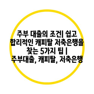 주부 대출의 조건| 쉽고 합리적인 캐피탈 저축은행을 찾는 5가지 팁 | 주부대출, 캐피탈, 저축은행 에 대해 자주 묻는 질문 TOP 5