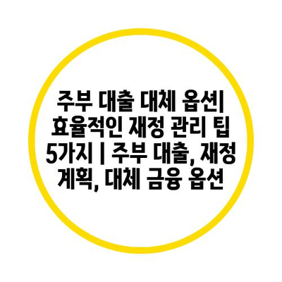 주부 대출 대체 옵션| 효율적인 재정 관리 팁 5가지 | 주부 대출, 재정 계획, 대체 금융 옵션에 대한 정보입니다.