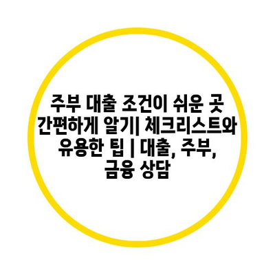 주부 대출 조건이 쉬운 곳 간편하게 알기| 체크리스트와 유용한 팁 | 대출, 주부, 금융 상담