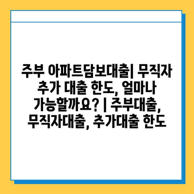 이 글에서는 주부와 무직자를 위한 아파트담보대출, 추가대출 한도를 실질적인 정보와 함께 명확하게 알려제공합니다.