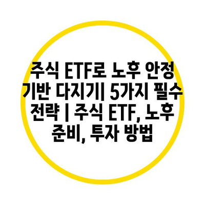주식 ETF로 노후 안정 기반 다지기| 5가지 필수 전략 | 주식 ETF, 노후 준비, 투자 방법