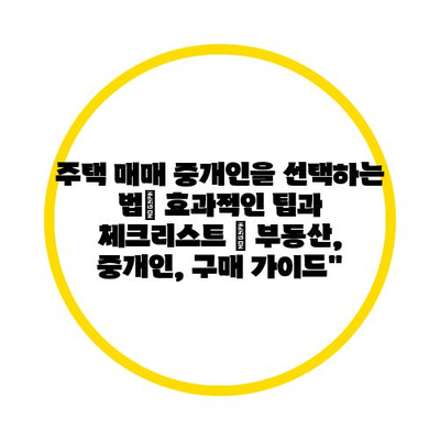 주택 매매 중개인을 선택하는 법| 효과적인 팁과 체크리스트 | 부동산, 중개인, 구매 가이드”