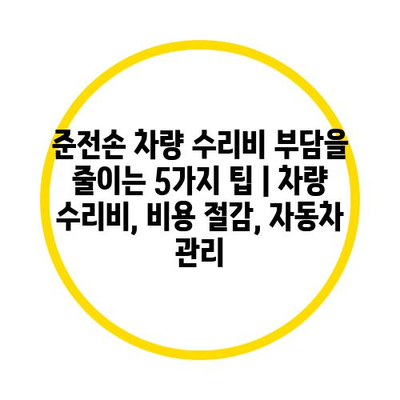 준전손 차량 수리비 부담을 줄이는 5가지 팁 | 차량 수리비, 비용 절감, 자동차 관리 에 대해 자주 묻는 질문 TOP 5