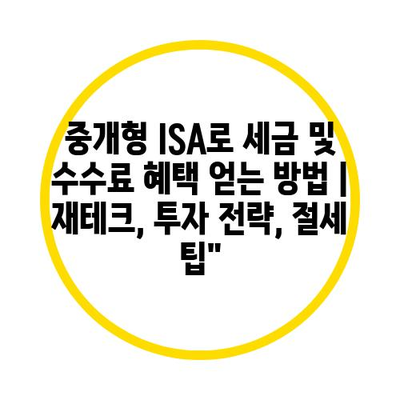 중개형 ISA로 세금 및 수수료 혜택 얻는 방법 | 재테크, 투자 전략, 절세 팁”