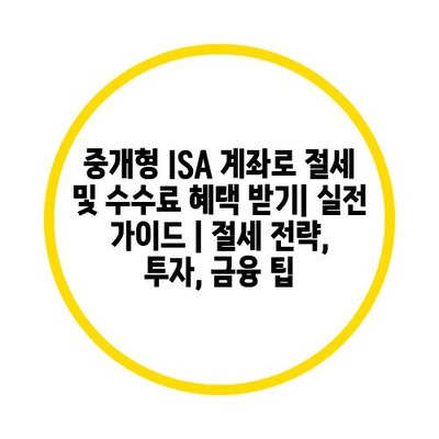 중개형 ISA 계좌로 절세 및 수수료 혜택 받기| 실전 설명서 | 절세 전략, 투자, 금융 팁