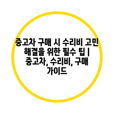 중고차 구매 시 수리비 고민 해결을 위한 필수 팁 | 중고차, 수리비, 구매 가이드
