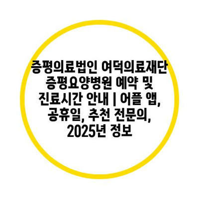 증평의료법인 여덕의료재단 증평요양병원 예약 및 진료시간 안내 | 어플 앱, 공휴일, 추천 전문의, 2025년 정보