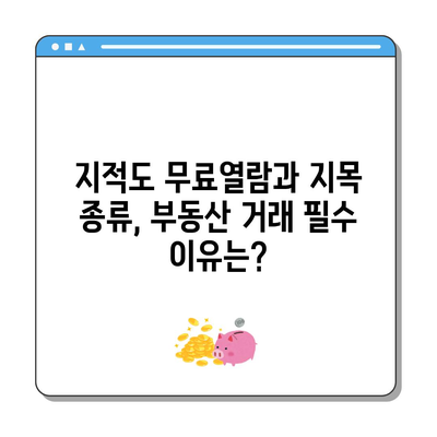 부동산 거래를 할 때 지적도 무료열람과 지목 종류는 매우 중요한 요소입니다. 이는 마치 토지의 신분증과 같으며, 거래의 세부사항을 이해하는 데 필수적입니다. 이 글에서는 지적도 무료열람 방법, 다양한 지목 종류, 그리고 이들이 부동산 거래에 어떻게 기여하는지를 구체적으로 살펴보겠습니다. 먼저, 지적도가 무엇인지, 왜 중요한지를 살펴보겠습니다.