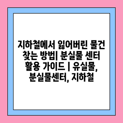 지하철에서 잃어버린 물건, 찾을 수 있을까요? 분실물 센터 활용 가이드로 희망을 찾아보세요!
