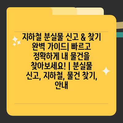 ✅ 지하철 분실물 신고부터 찾는 방법까지, 모든 정보를 한눈에!
