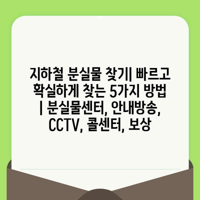 지하철 분실물 찾기 | 빠르고 확실하게 찾는 5가지 방법 | 분실물센터, 공지방송, CCTV, 콜센터, 보상