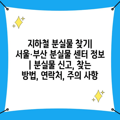 지하철 분실물 찾기| 서울·부산 분실물 센터 정보 | 분실물 신고, 찾는 방법, 연락처, 주의 사항