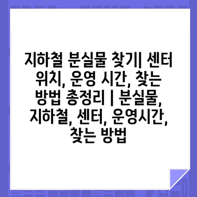 ✅ 지하철 분실물 센터 위치와 운영시간을 한눈에 확인하세요!