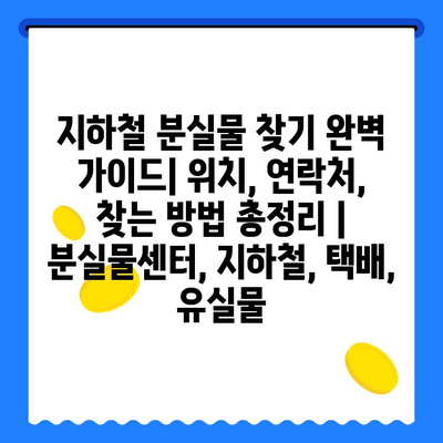 지하철 분실물 찾기 완벽 설명서| 위치, 연락처, 찾는 방법 총정리 | 분실물센터, 지하철, 택배, 유실물