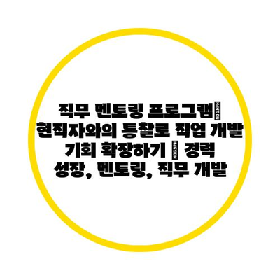 직무 멘토링 프로그램| 현직자와의 통찰로 직업 개발 기회 확장하기 | 경력 성장, 멘토링, 직무 개발