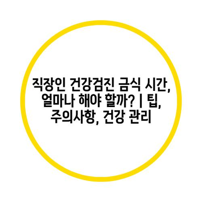 많은 직장인들이 건강검진을 앞두고 금식에 대해 고민합니다. 일반적으로 건강검진 전 8시간에서 12시간 동안의 금식이 필요합니다. 이는 혈액검사 시 정확한 결과를 얻기 위해 필수적입니다.