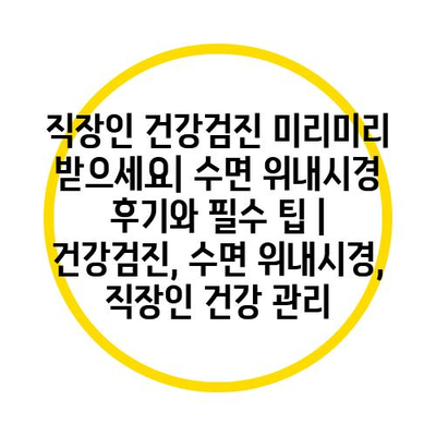 직장인 건강검진 미리미리 받으세요| 수면 위내시경 후기와 필수 팁 | 건강검진, 수면 위내시경, 직장인 건강 관리 에 대해 자주 묻는 질문 TOP 5