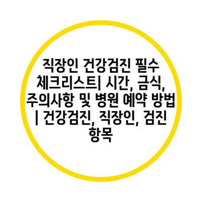 직장인 건강검진 필수 체크리스트| 시간, 금식, 주의사항 및 병원 예약 방법 | 건강검진, 직장인, 검진 항목 에 대해 자주 묻는 질문 TOP 5