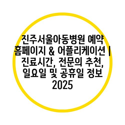 진주서울아동병원 예약 홈페이지 & 어플리케이션 | 진료시간, 전연락 추천, 일요일 및 공휴일 정보 2025에 대해 알아보겠습니다.