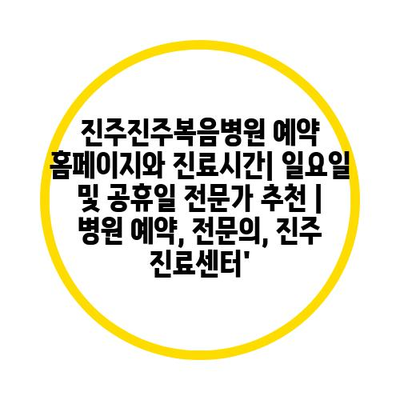 진주진주복음병원 예약 홈페이지와 진료시간| 일요일 및 공휴일 전문가 추천 | 병원 예약, 전연락, 진주 진료센터
