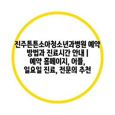 ✅ 진주튼튼소아청소년과병원의 진료시간과 예약 방법을 자세히 알아보세요.