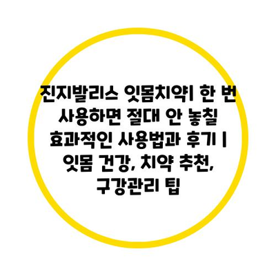 진지발리스 잇몸치약| 한 번 사용하면 절대 안 놓칠 효과적인 사용법과 후기 | 잇몸 건강, 치약 추천, 구강관리 팁에 대해 자주 묻는 질문 TOP 5