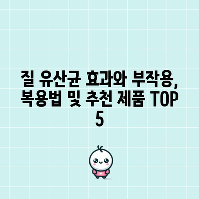 질 유산균의 효과와 부작용, 복용법 및 가격을 알아보고, 좋은 제품을 고르는 방법과 추천 제품 Top 5를 제시합니다.