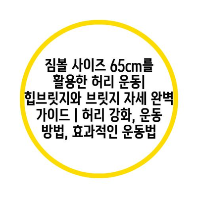 힙브릿지는 허리와 엉덩이 근육을 강화하는 데 중요한 운동입니다. 이 운동은 짐볼과 같은 도구를 사용하여 효과를 극대화할 수 있습니다. 특히 짐볼 크기 65cm는 다양한 신체 조건의 사용자에게 적합하여 안정성을 높여줍니다.