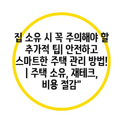 집 소유 시 꼭 주의해야 할 추가적 팁| 안전하고 스마트한 주택 관리 방법! | 주택 소유, 재테크, 비용 절감
