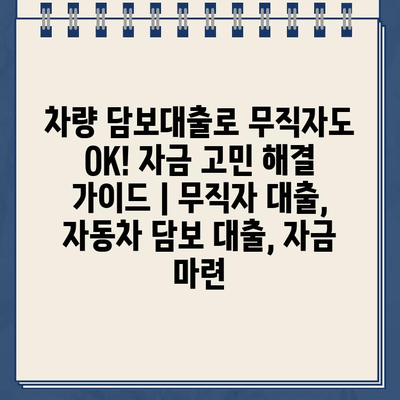 차량 담보대출로 무직자도 OK! 자금 고민 해결 가이드 | 무직자 대출, 자동차 담보 대출, 자금 마련
