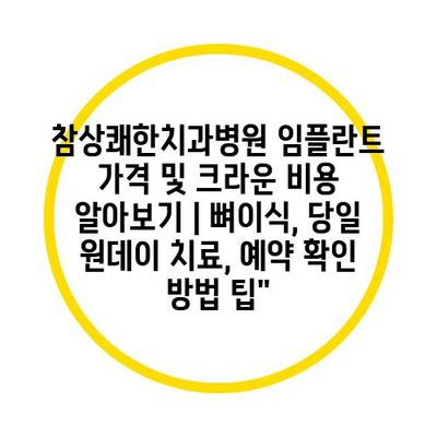 참상쾌한치과병원 임플란트 가격 및 크라운 비용 알아보기 | 뼈이식, 당일 원데이 치료, 예약 확인 방법 팁