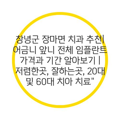 창녕군 장마면 치과 추천| 어금니 앞니 전체 임플란트 가격과 날짜 알아보기 | 저렴한곳, 잘하는곳, 20대 및 60대 치아 치료에 대해 알아보겠습니다.