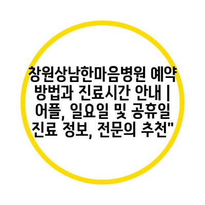 창원상남한마음병원 예약 방법과 진료시간 공지 | 어플, 일요일 및 공휴일 진료 정보, 전연락 추천”에 대해 자주 묻는 질문 TOP 5