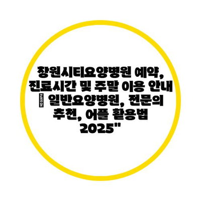 창원시티요양병원 예약, 진료시간 및 주말 이용 공지 | 일반요양병원, 전연락 추천, 어플 활용법 2025