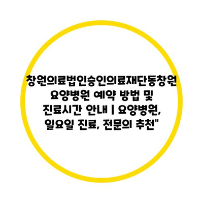 ✅ 창원의료법인승인의료재단 동창원요양병원 예약 절차를 자세히 알아보세요!