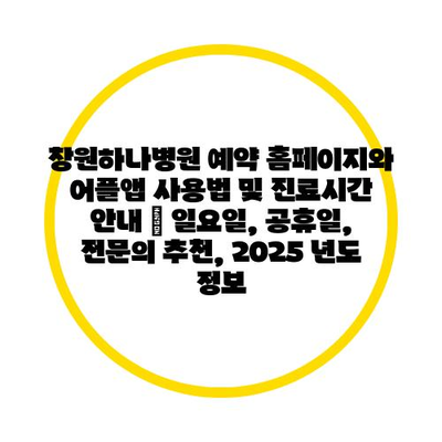 창원하나병원 예약 홈페이지와 어플앱 사용법 및 진료시간 공지 | 일요일, 공휴일, 전연락 추천, 2025 년도 정보 에 대해 자주 묻는 질문 TOP 5