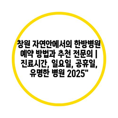 창원 자연안에서의 한방병원 예약 방법과 추천 전연락 | 진료시간, 일요일, 공휴일, 유명한 병원 2025″ 에 대해 자주 묻는 질문 TOP 5
