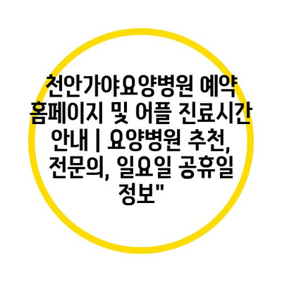 ✅ 천안가야요양병원의 진료시간과 예약 방법을 알아보세요.