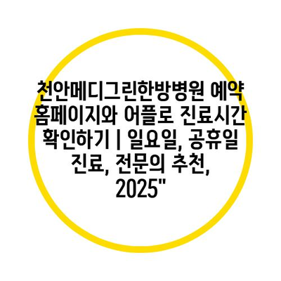 천안메디그린한방병원 예약 홈페이지와 어플로 진료시간 확인하기 | 일요일, 공휴일 진료, 전연락 추천, 2025에 대해 알아보겠습니다.