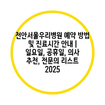 천안서울우리병원 예약 방법 및 진료시간 공지 | 일요일, 공휴일, 의사 추천, 전연락 리스트 2025에 대해 알아보겠습니다.