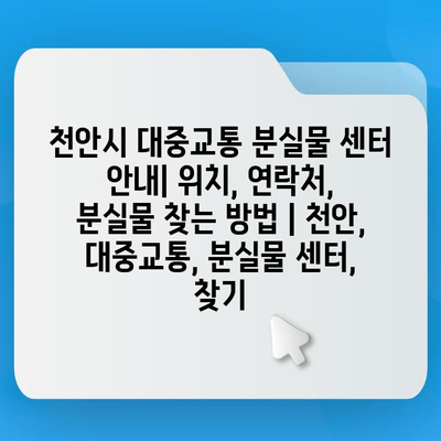 천안시 대중교통 분실물 센터 안내| 위치, 연락처, 분실물 찾는 방법 | 천안, 대중교통, 분실물 센터, 찾기