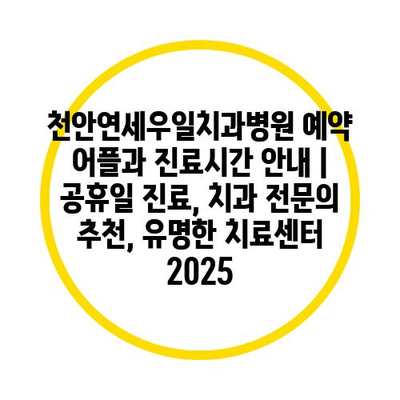 천안연세우일치과병원 예약 어플과 진료시간 공지 | 공휴일 진료, 치과 전연락 추천, 유명한 치료센터 2025
