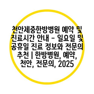 천안제중한방병원 예약 및 진료시간 공지 – 일요일 및 공휴일 진료 정보와 전연락 추천 | 한방병원, 예약, 천안, 전연락, 2025 에 대해 자주 묻는 질문 TOP 5